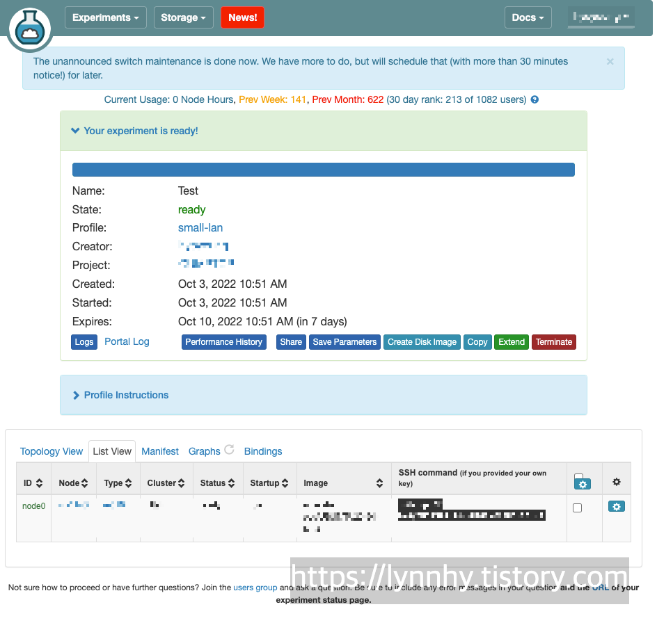 연구자용 무료 클라우드 서비스, Cloudlab, 첫사용 본문